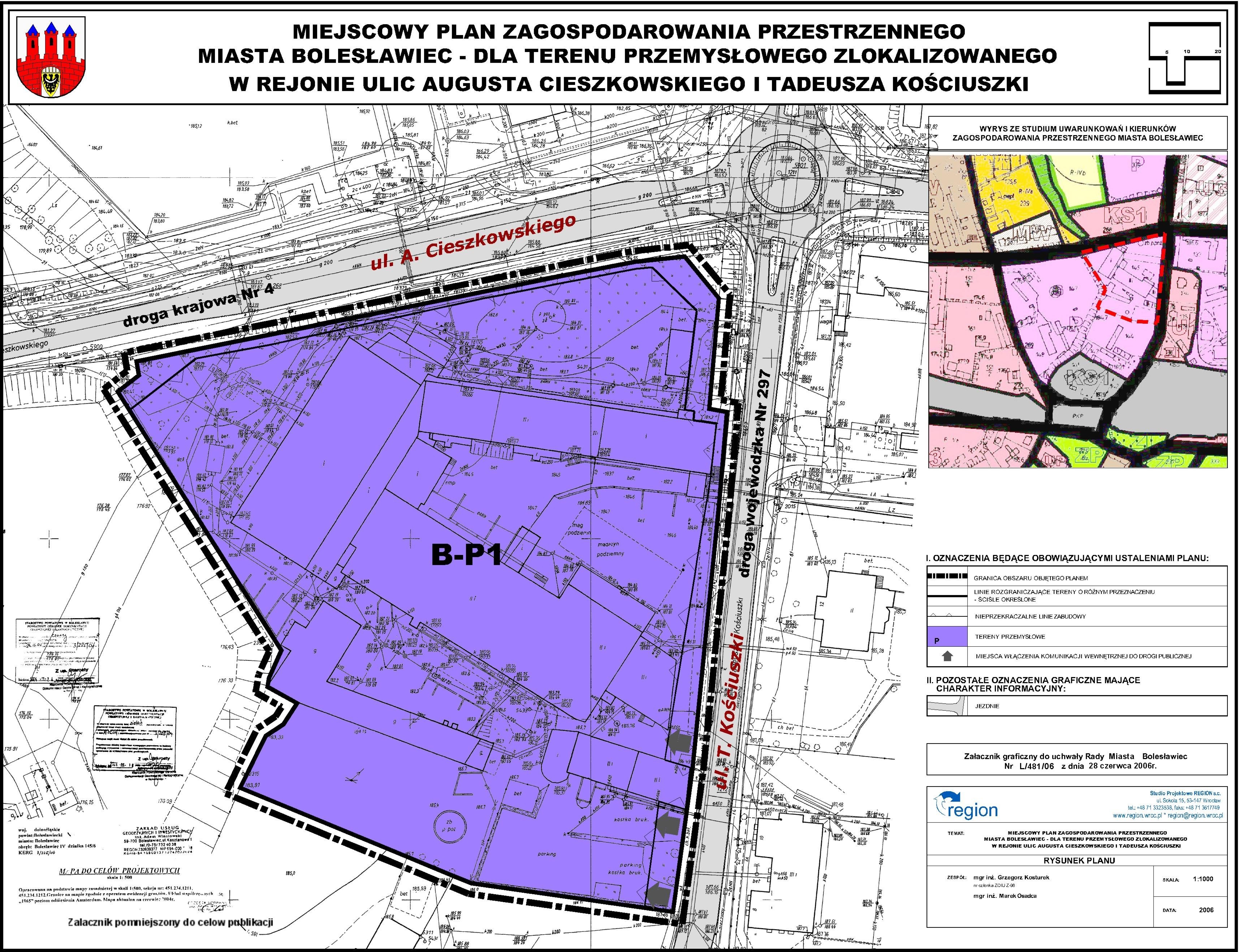 Miejscowy plan zagospodarowania przestrzennego miasta Bolesławiec - dla terenu przemysłowego zlokalizowanego w rejonie ulic Augusta Cieszkowskiego i Tadeusza Kościuszki |