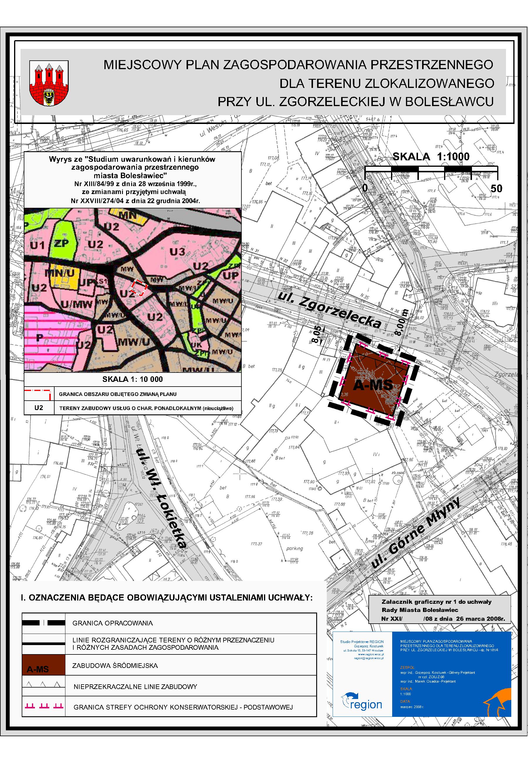 Miejscowy plan zagospodarowania przestrzennego dla terenu zlokalizowanego w obrębie ulic: Łokietka - Górne Młyny - Mała - Piaskowa w Bolesławcu |